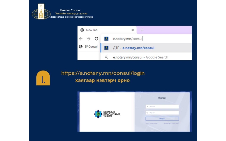 Иргэн Та нотариатын https://consul.notary.mn/login цахим хуудсанд нэвтэрч шинээр бүртгэл үүсгэж, итгэмжлэлийн маягтыг бөглөнө. Итгэмжлэлийг цахим хэлбэрээр хавсралтын хамт тус Консулын газарт илгээж, хянуулсны дараа Консулын газарт өөрийн биеэр ирж гарын үсэг зуран, зохих төлбөрөө төлнө. Эсхүл өөрийн оршин амьдарч буй газартаа хянуулсан Итгэмжлэлээ хэвлэн авч, гарын үсгээ зуран баталгаажуулж, зохих төлбөрийн дүн бүх money order-ын хамтаар Консулын газрын хаягаар шуудангаар ирүүлж болно.